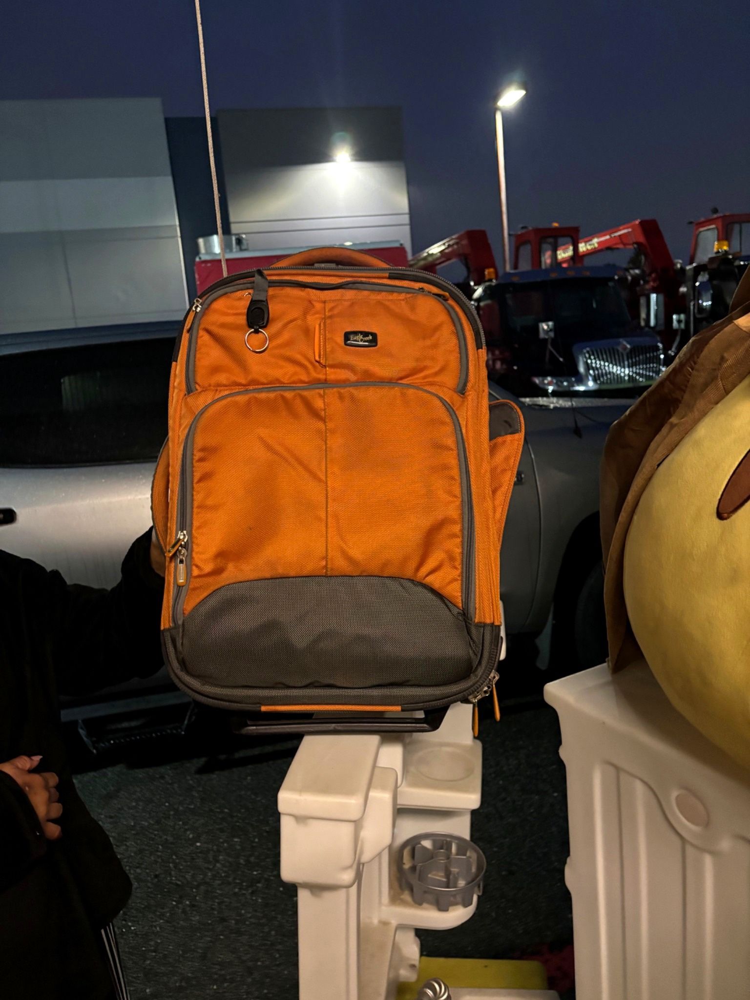 Lightweight, durable Eagle Creek carry-on suitcase with smooth-rolling wheels and telescoping handle. Excellent condition—clean inside and out, zippers glide smoothly, handle locks properly. Great for weekend trips and overhead-bin travel. Brand: Eagle Creek Color: Orange/Gray 2-wheel roller + telescoping handle Multiple compartments Clean interior (no odors) Stored indoors / non-smoking home