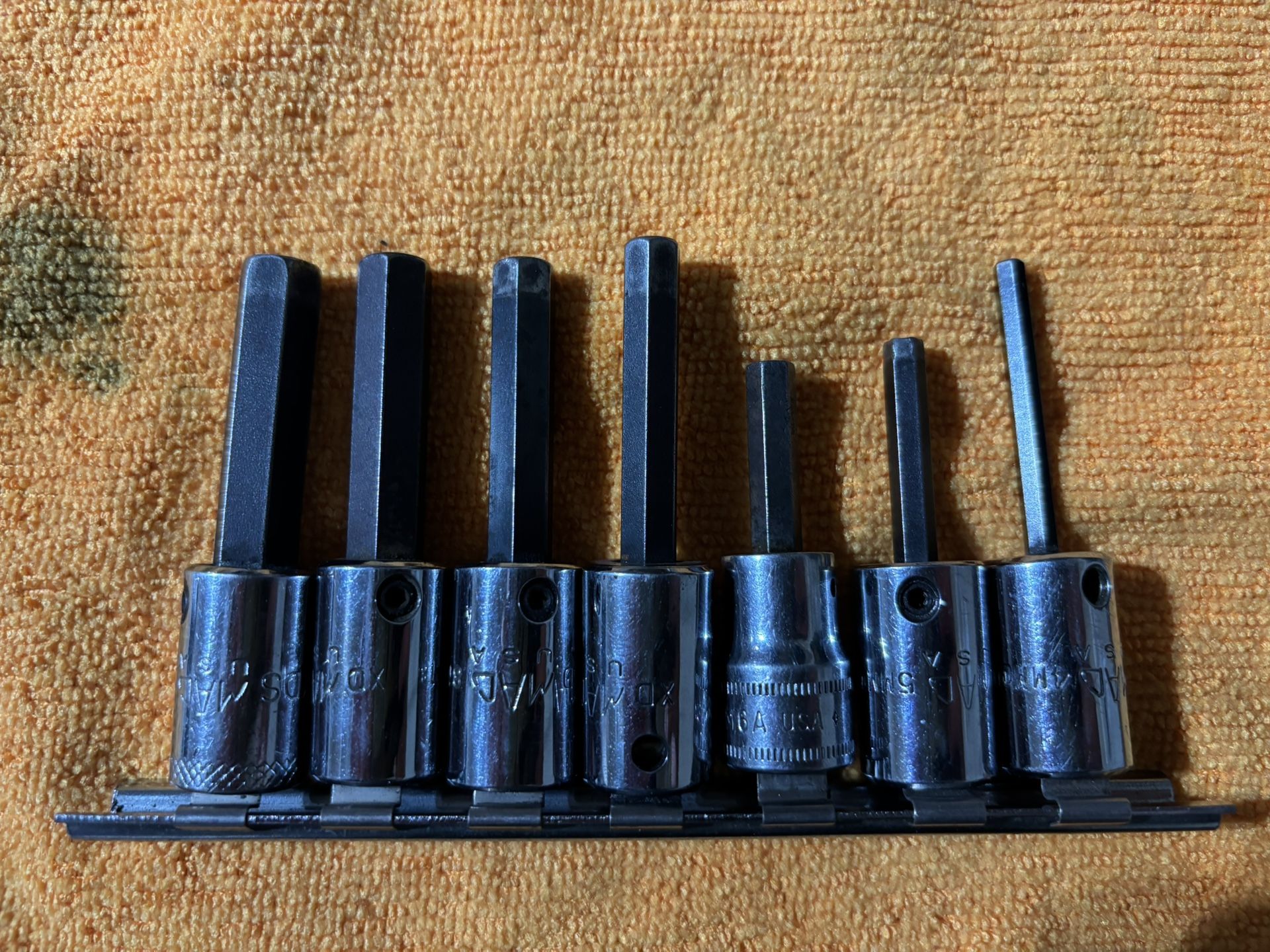 I have a MAC Tools 3/8” drive 7-piece Hex metric socket set. The sizes are 4mm, 5mm, 6mm, 7mm, 8mm, 9mm and 10mm. The 6mm is a Snap-On socket, the res are MAC. Asking $45 for it.