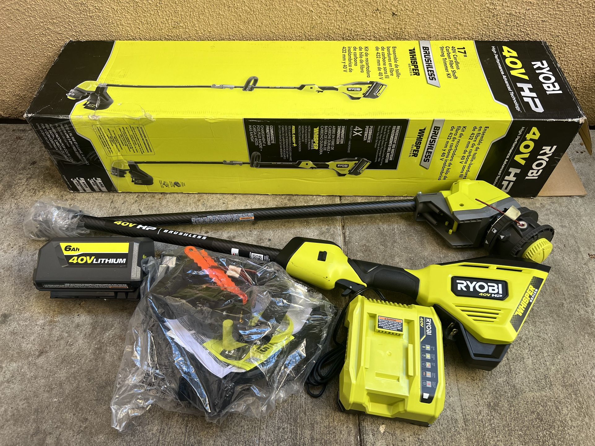 RYOBI 40V HP Brushless Whisper Series 17 in. Cordless Battery Carbon Fiber Shaft String Trimmer w/ 6.0 Ah Battery & Charger