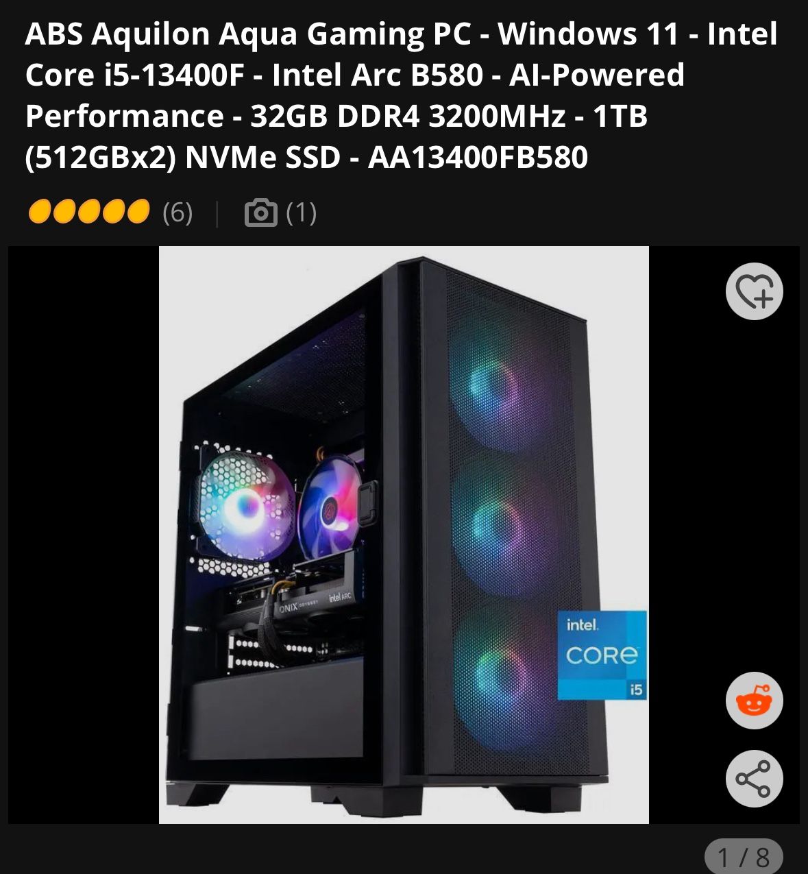 Operating System: Windows 11 Home CPU: Intel Core i5-13400F 10-Core (6P+4E) GPU: ONIX ODYSSEY Arc B580 12GB GDDR6 Motherboard: ASRock B760M-C/D4 (BULK) RAM: Team T-CREATE CLASSIC (2 x 16GB) DDR4 3200 SSD: Intel 670P 512GB NVMe M.2 SSD x 2 CPU Cooler: ARGB Cooler PSU: Thermaltake Toughpower GX2 80+ Gold 600W Case: Montech AIR 100 ARGB MICRO-ATX Tower WiFi: Yes Bluetooth: Yes VR Ready: Yes