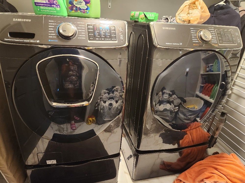 Black Samsung W/D in Black finish **The 2 Pedestals NOT Included*** I'm installing my New W/D on them.