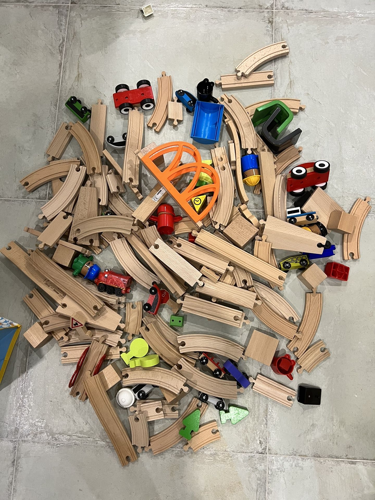 Develops the imagination, fine motor skills and logical thinking of your child. This set has everything needed to build a train track with curves, bridges, tunnels and barriers. There are also buildings, trees and signs that help the driver go the right way – and stop when needed.