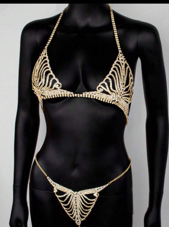 Gold Plated Rhinestone Floral Bra And Body Chain Set