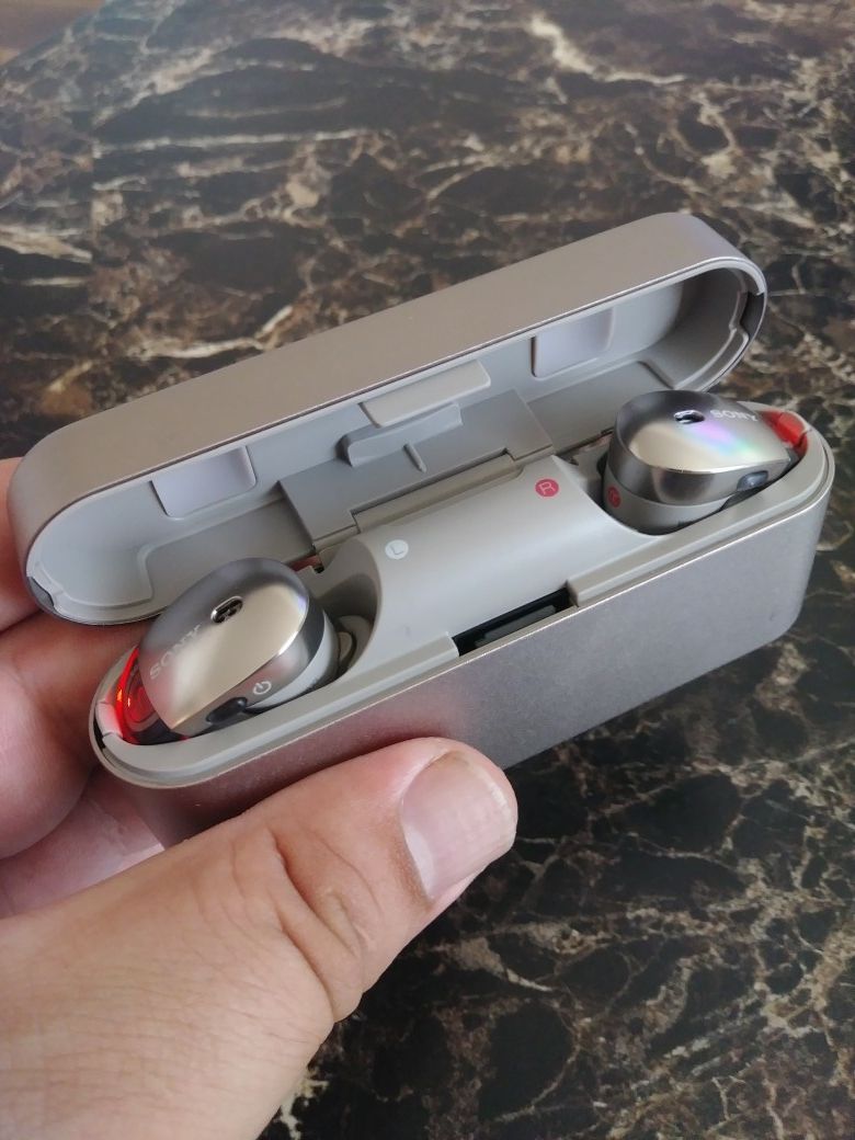 Original Sony, never used. No retail box. Left earbud is for phone calls, both of them are for music. Earbuds are connected to each other.Bluetooth, NFC, Noise Cancelling . Comes with the charger dock and the cable. No delivery, only for pick up.