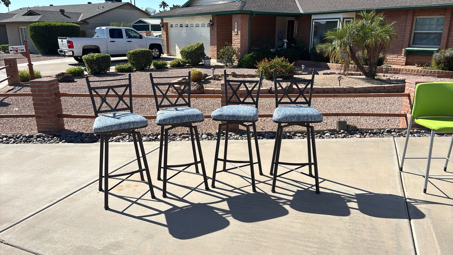 Bar table chairs, they swivel & newly recovered fabric. Pick up this weekend at thunderbird and Tatum blvd.