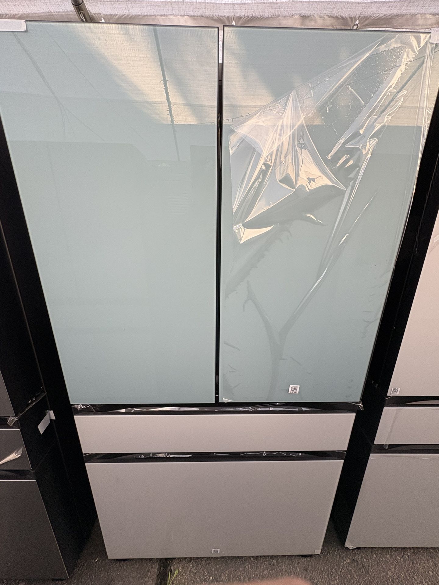 Samsung Bespoke 4 Door Refrigerator In Morning Blue And White Glass