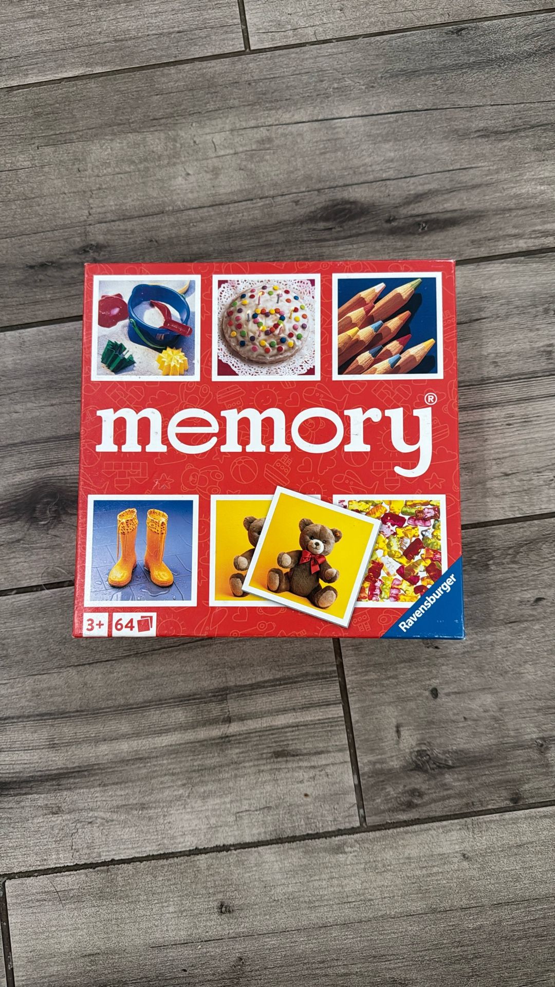Classic memory game. Ages 3+. 64 cards in total. Brand new unopened box