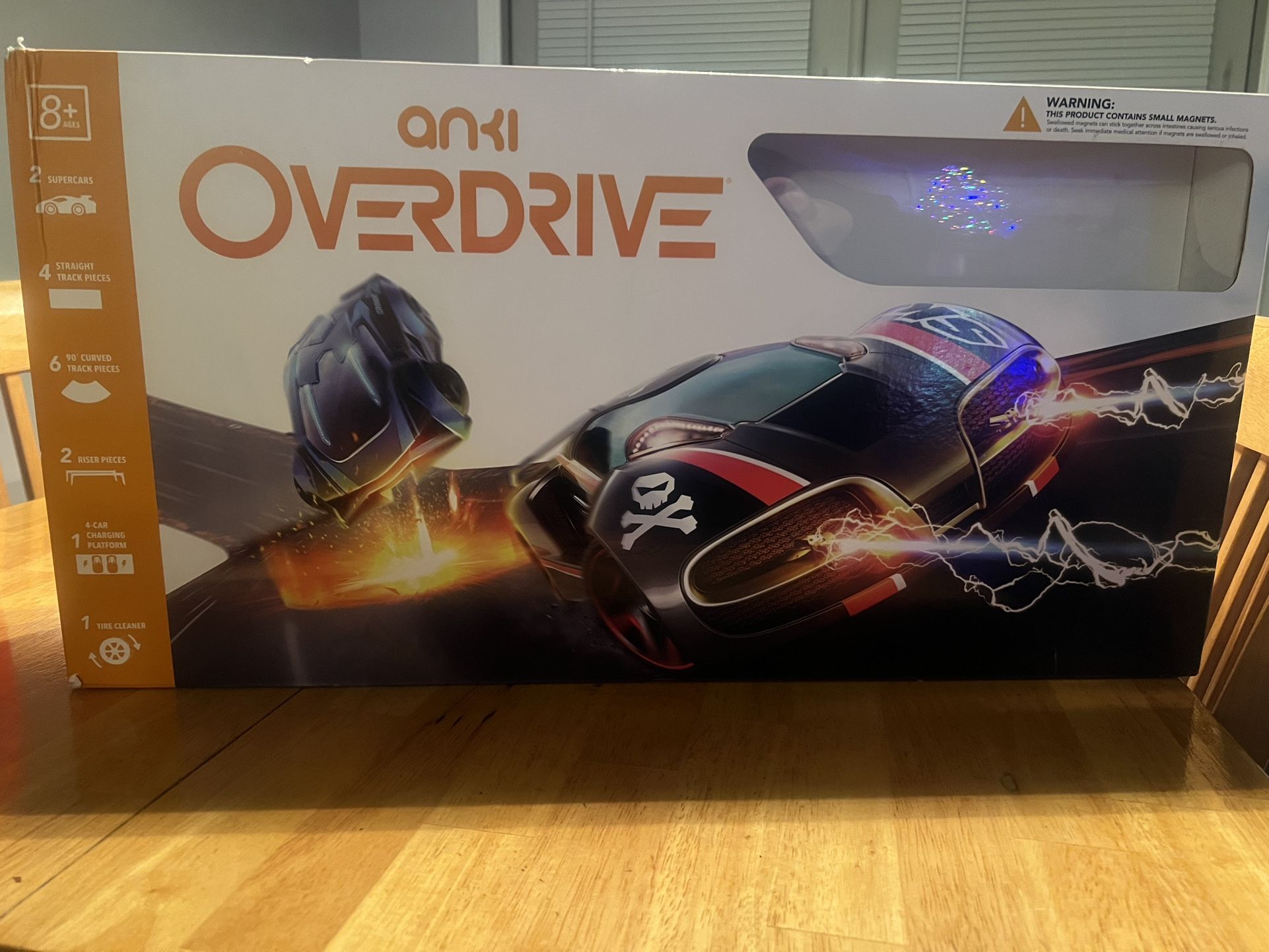 Anki Overdrive Starter Kit, includes 4 total cars and expansion pack track in box.