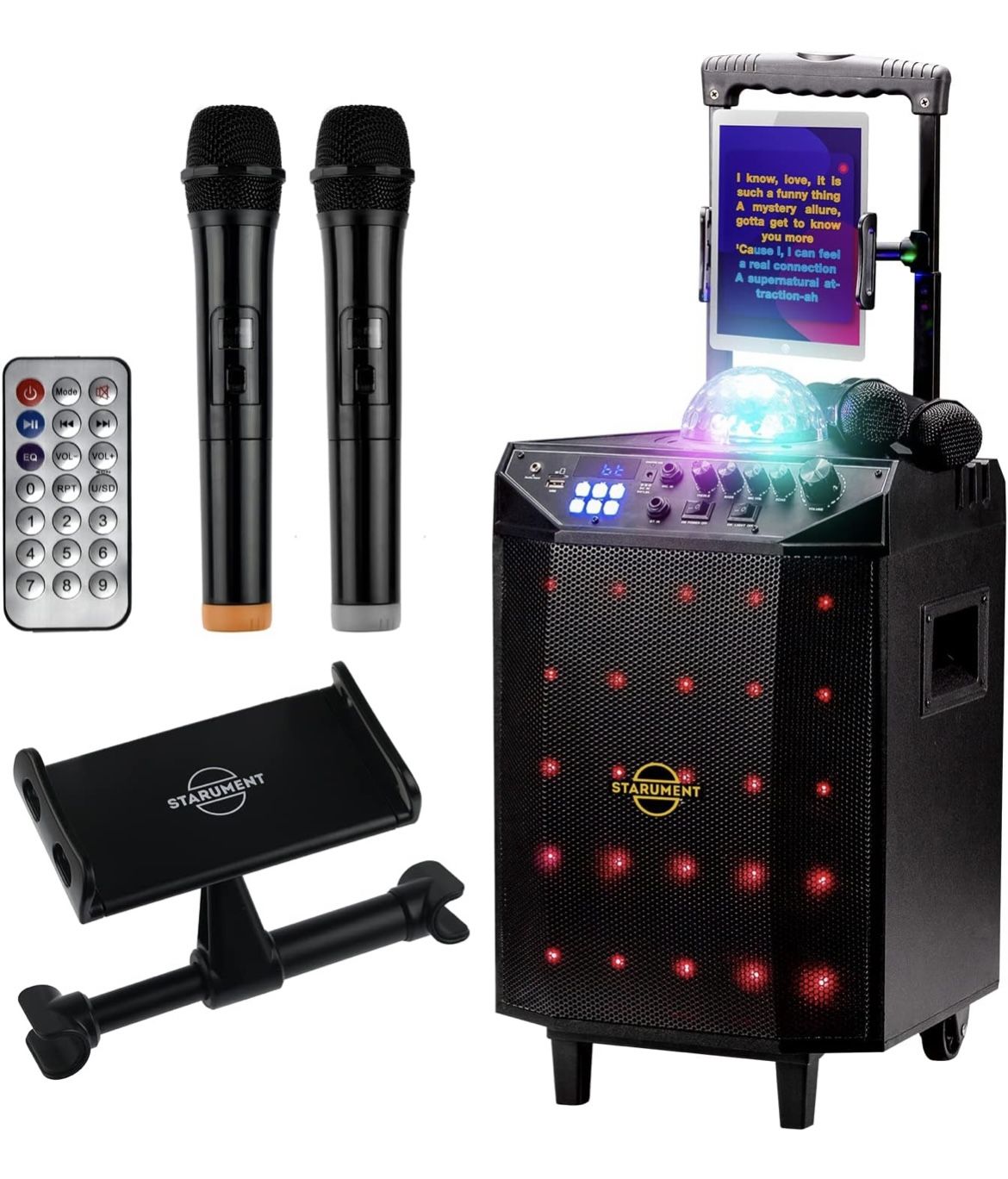 Starument Portable Karaoke Machine for Adults & Kids Complete Karaoke System Includes Bluetooth Speakers on Wheels, 2 Bluetooth Microphones, Disco Bal