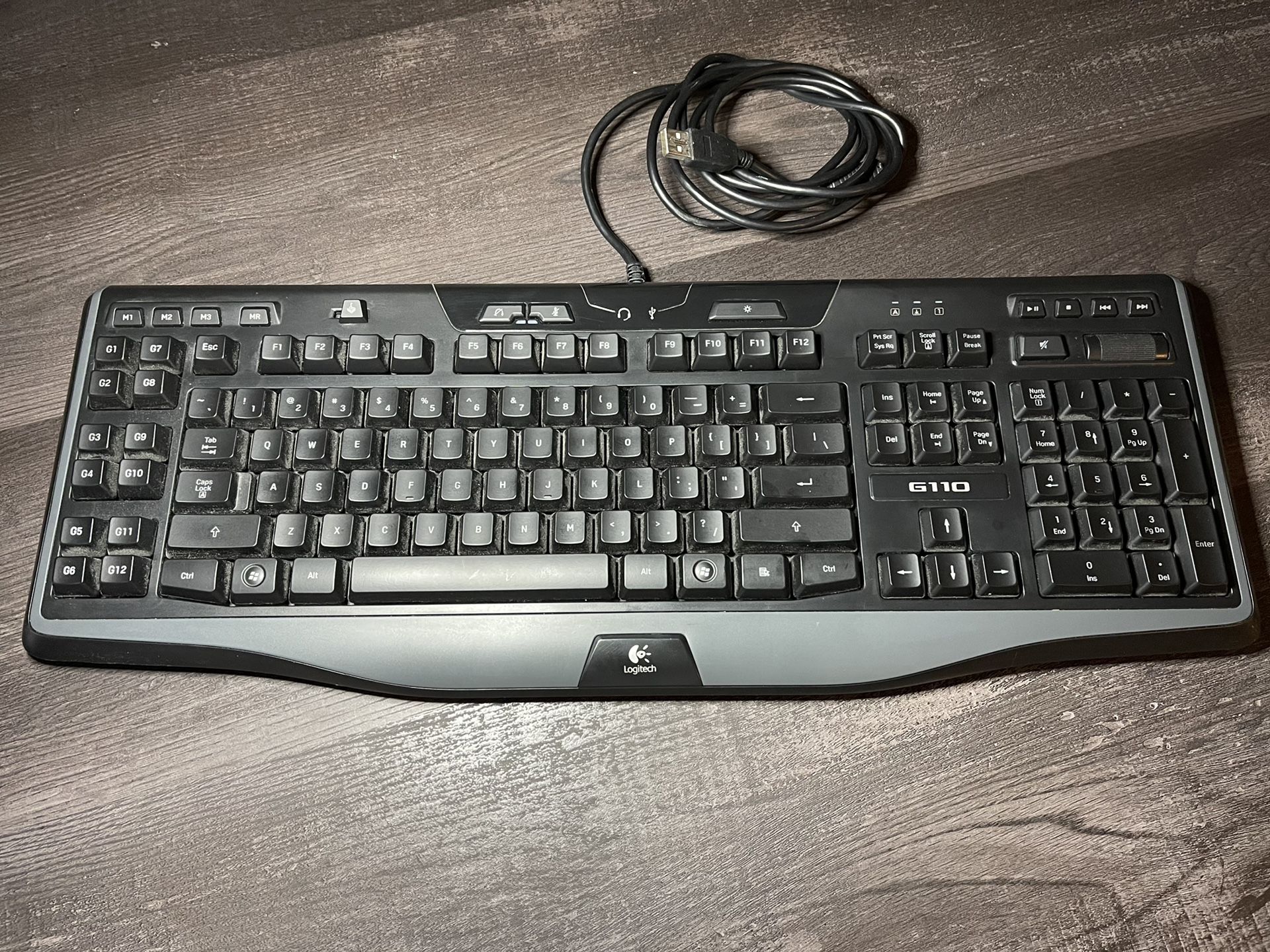 Logitech G110 backlit gaming keyboard (blue colored lighted keys), AUX-USB