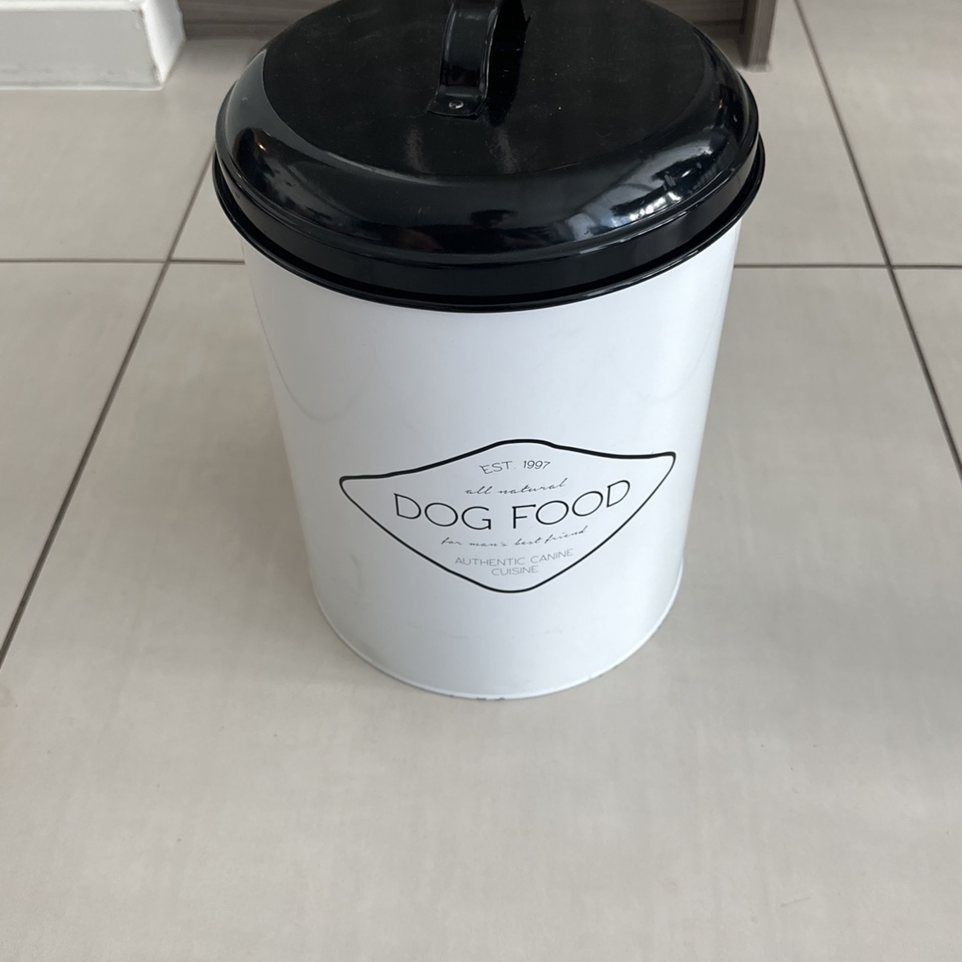 Lightly used dog food storage can. Great for storing your pets food with style!