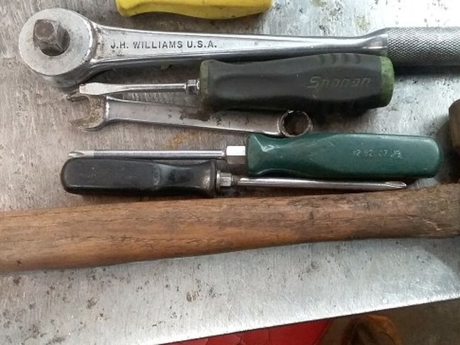 Blue point 16oz ball hammer Sk and snap on phillips screwdrivers Snap on flat screwdrivers times 2 Williams half inch ratchet Snap on half inch wrench Price is firm.