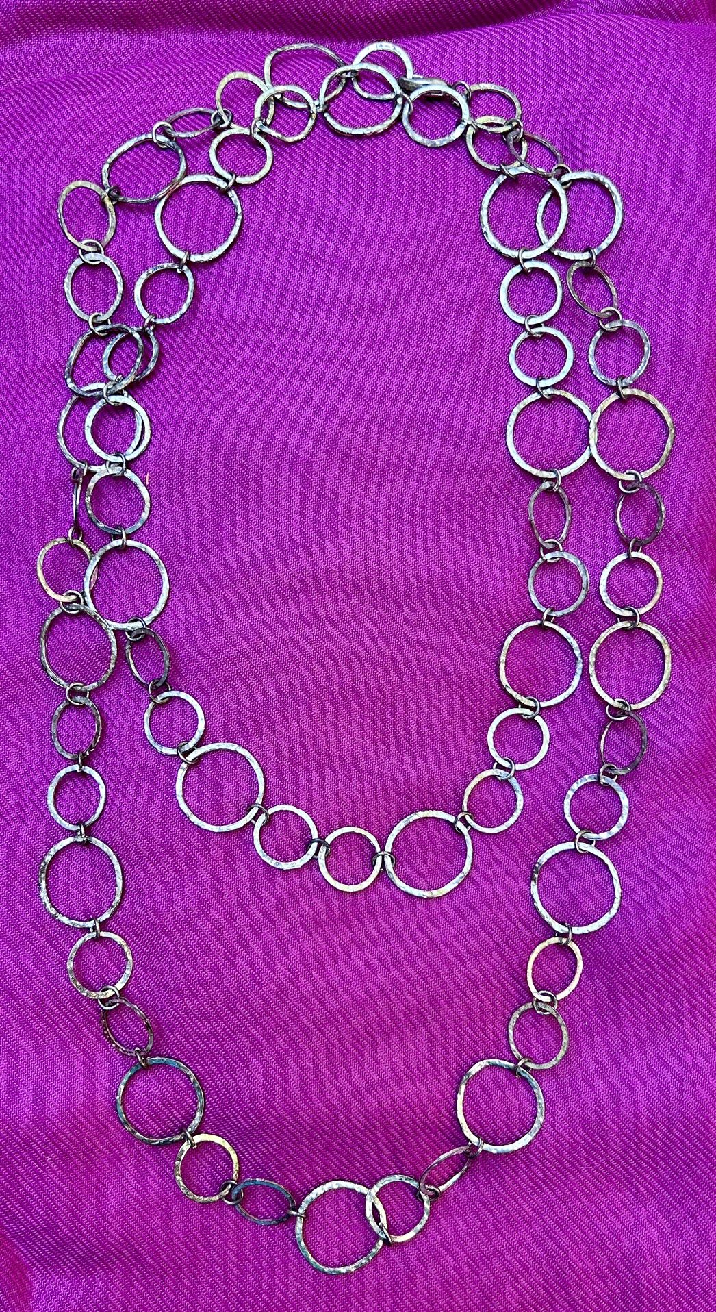 New silver link necklace. Unsure if it’s sterling silver or not. Purchased and just haven’t worn, so hoping to find it a new home.