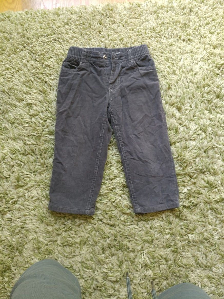 Very soft corduroy pants, Jersey lined. Does not attract lint, very good quality and comfortable. Size 24/2T. It has part of a botton missing. A little handy work there with fixing botton and you have amazing pants for your little one.