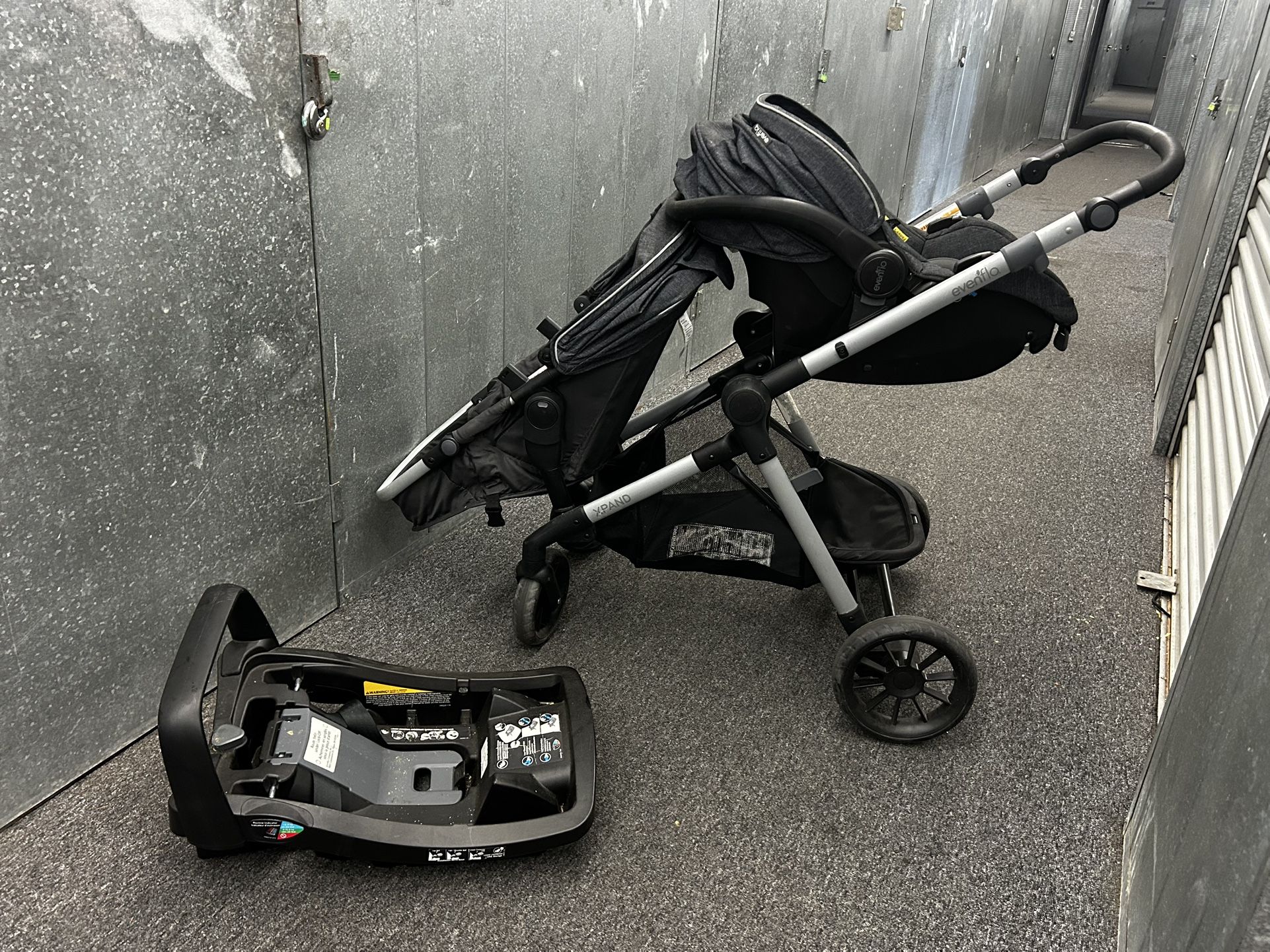 This double stroller is used, but still in good condition comes with infant car seat and base to car. All parts included. I payed $400 for everything.