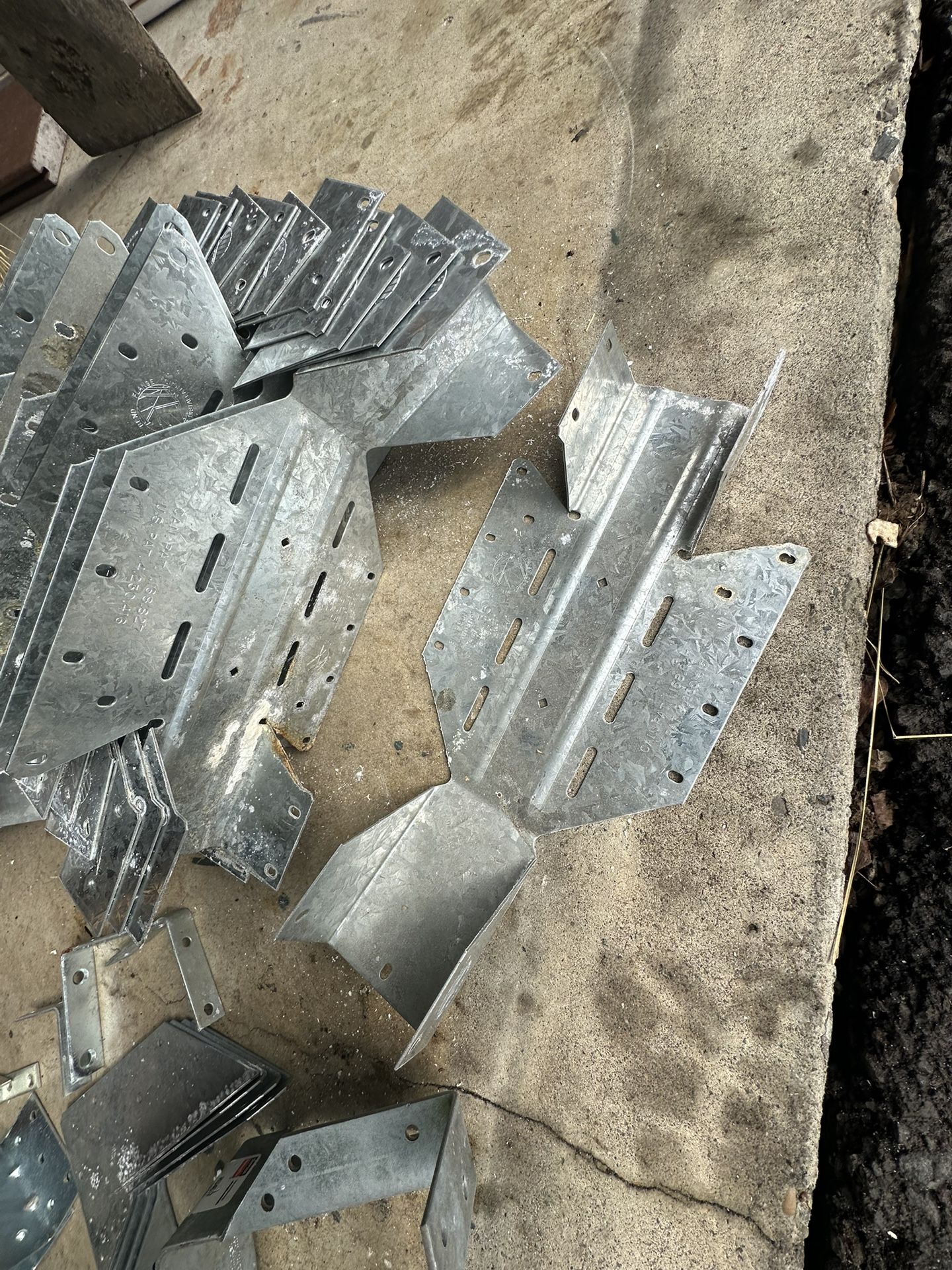 Lot includes 29 Simpson Strong-Tie LSSUI-35 galvanized, 18 gauge, adjustable joist hangers. From the Simpson website: “Simpson Strong-Tie LSSU series of hangers may be sloped and skewed in the field, offering a versatile solution for attaching joists and rafters. These hangers may be sloped up or down and skewed left or right up to 45 degrees.” Price is FIRM.