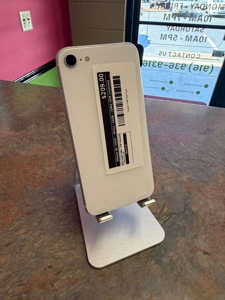📱 Quality Tech, Local Trust! 🔥 iPhone SE (2020) • 64GB Storage • White Color • CDMA + GSM Unlocked • Compact & Powerful A fast and affordable iPhone powered by the same performance chip as higher-end models—perfect for everyday use. ✨ Every device includes: ✅ 6-Month Guarantee ✅ 90%+ Battery Health ✅ Charging Cable Included Shop local. Save money. Stay connected. 💪 💳 WE FINANCE! Payment plans available with as little as $50 down 📍 Available at: iParts & Phone Repairs 608A East Bidwell St Folsom, CA 95630 🕒 Store Hours: Mon–Fri 10AM–7PM Sat 10AM–5PM Sun Closed Holidays – Call or Message 📩 Message us for availability — inventory moves fast! 🚀