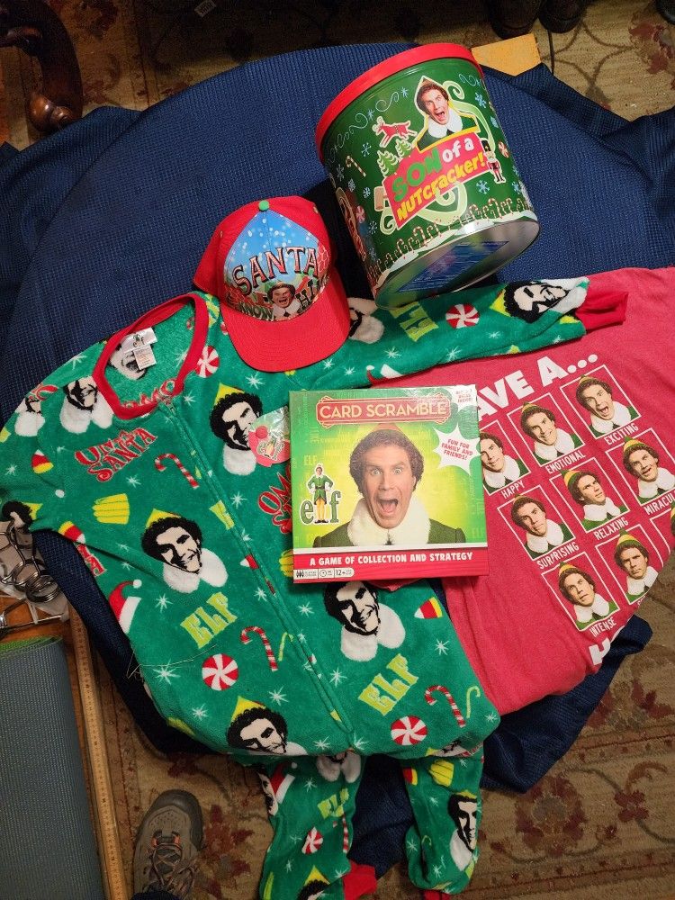 Get ready for the holiday with your very own group of Buddy Elf memorabilia. Everything is in good condition. All the pieces are in the game. Your neighbors will be quite jealous! The sleepwear is new with tag (0 - 2 ladies). No one else has Buddy pj's...
