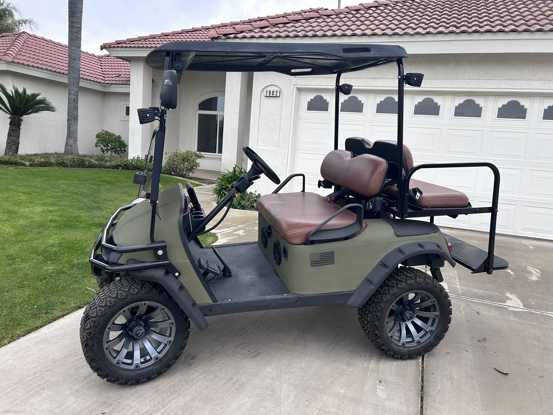 EZ GO golf cart 36Volt - (3 12V batteries) Custom paint Lifted with Custom wheels Batteries 2 yrs old. Brand new battery for accessories Boss audio bluetooth screen Kicker speakers Tinted windshield Remote control for under lights Southwest Bakersfield