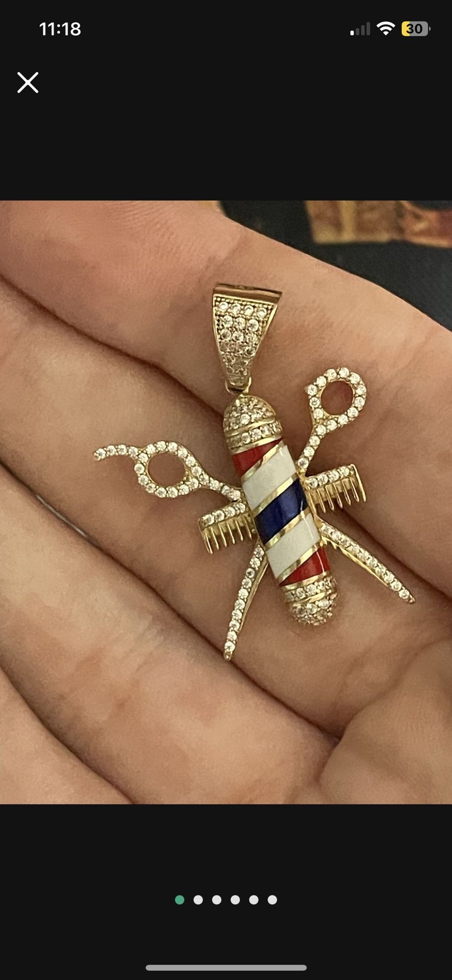 14kt solid gold cz diamond barber pendant 4.65 grams (Selling at 14kt spot price) $417.23 January 21st 2026 Low offers will be Ignored Picked up in Riverside 92503✅