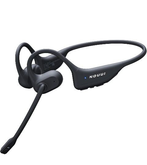 Open Ear Headphones with Mic, Dual Connection Bluetooth Headset with Microphone (AI Noise Cancelling), Bluetooth 5.3 Headphones with Mic, Sweatproof W