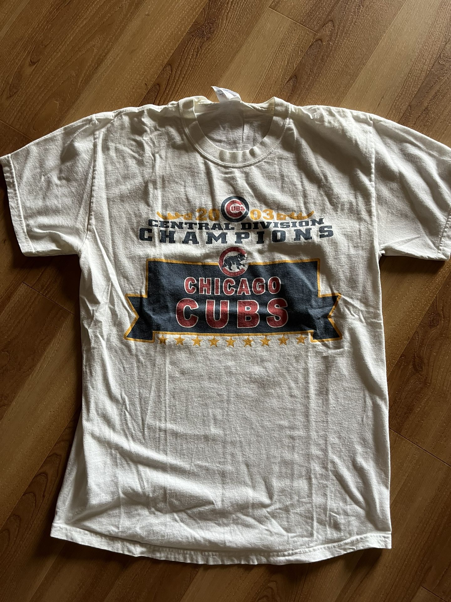 Vintage 2003 Chicago Cubs Central Division Champs Short Sleeve Tshirt. All of the players on the team roster are listed on the back of the shirt. Unisex styling. Men’s size medium. In very good condition. Cash only please