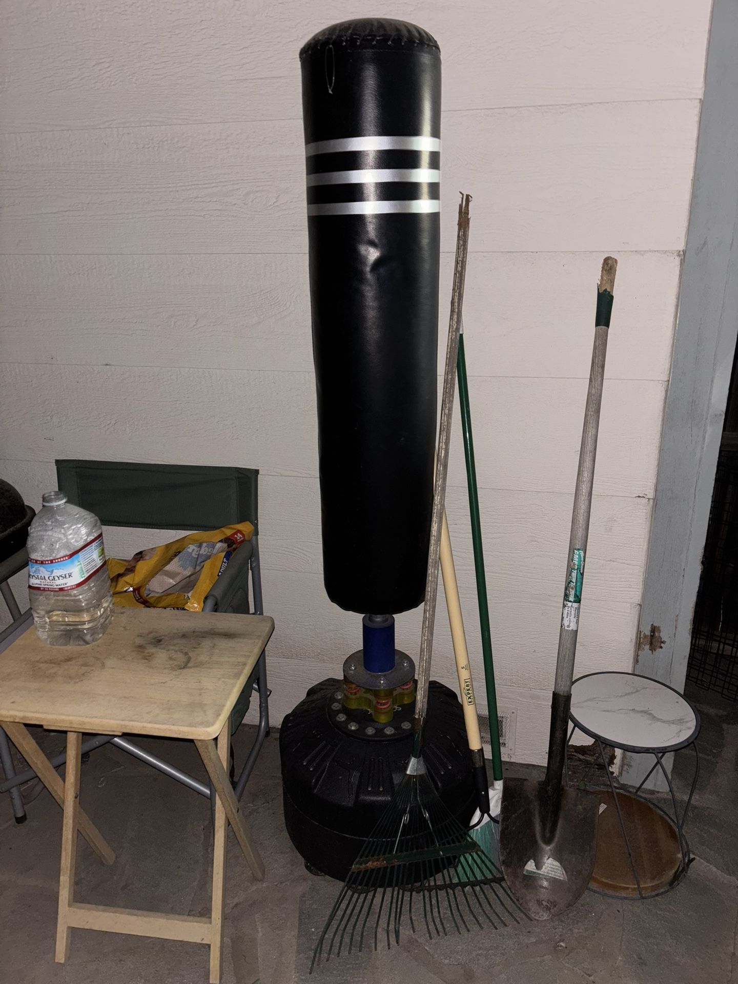 Punching bag collecting dust bought off Amazon only used a few times good condition does need to get picked up bottom is filled with sand