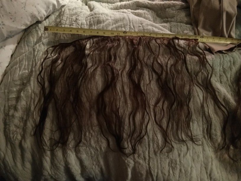 7 pcs. 4 of which are Ready to clip in. the Other 2 are weft 18 Inch long dark brown. Thick and soft.