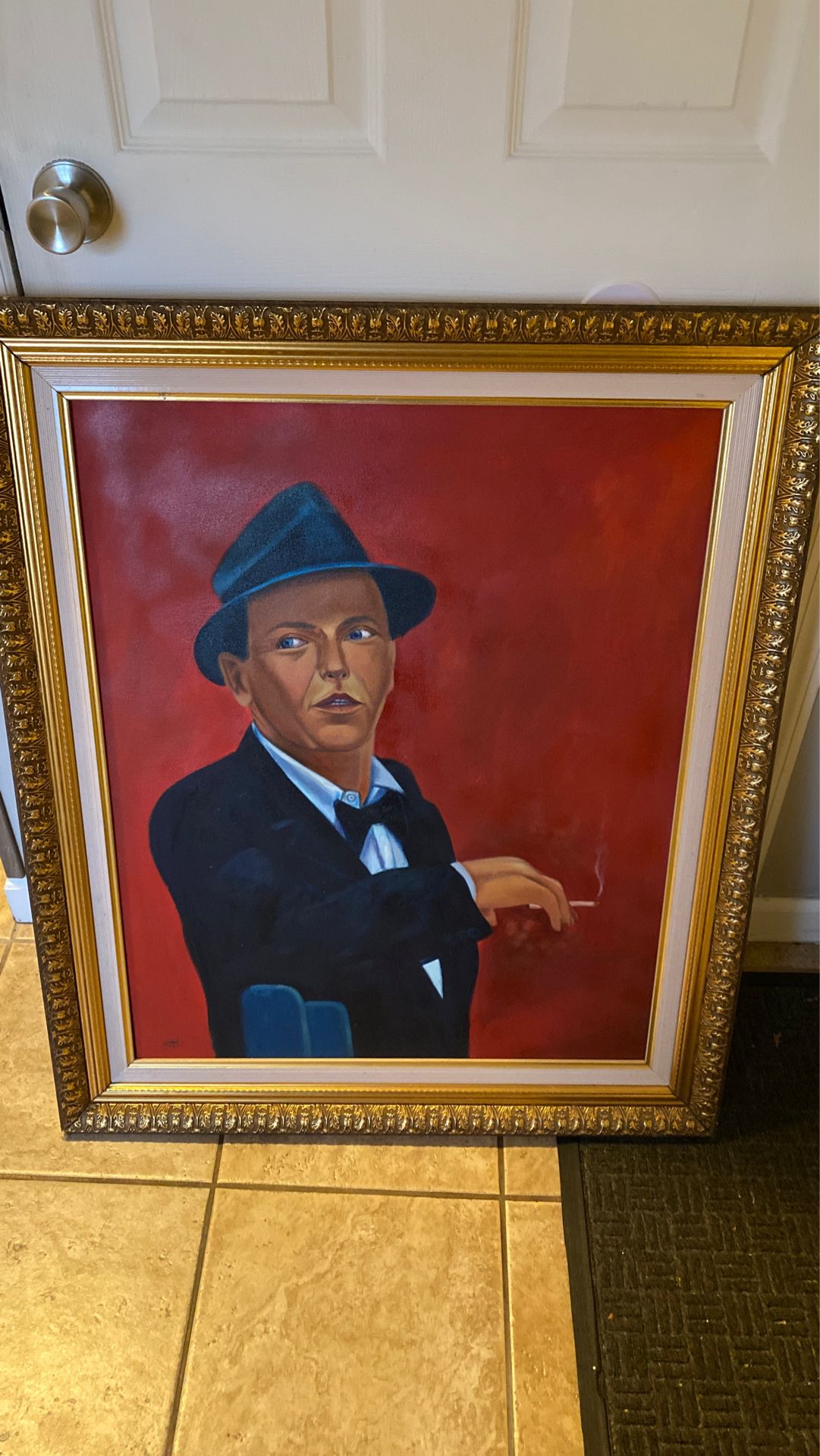 Great painting of ole blue eyes the painting itself not including frame is about 29 1/2” high by 23 1/2” wide