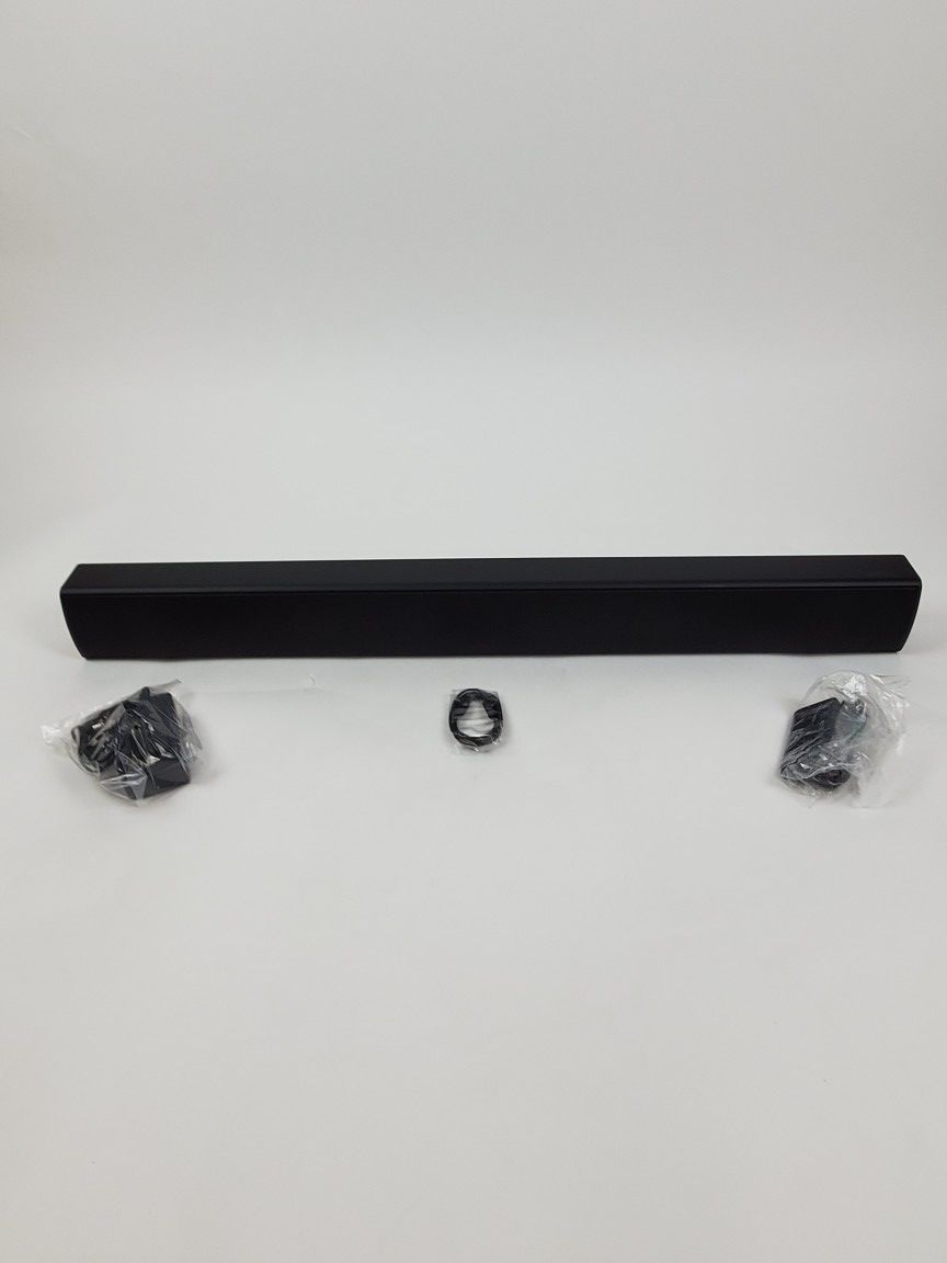 30'' 2.0-CHANNEL SOUNDBAR WITH BLUETOOTH, REMOTE CONTROL AND OPTICAL INPUT1. 30'' 2.0-CHANNEL SOUNDBAR WITH BLUETOOTH, REMOTE CONTROL AND OPTICAL INPUT 2. 34 Watts peak power output delivers rich, crystal-clear sound to enhance any movie, music or gaming experience 3. Bluetooth technology offers seamless streaming from Bluetooth-enabled devices 4. Supports optical and aux input 5. Includes AC adapter