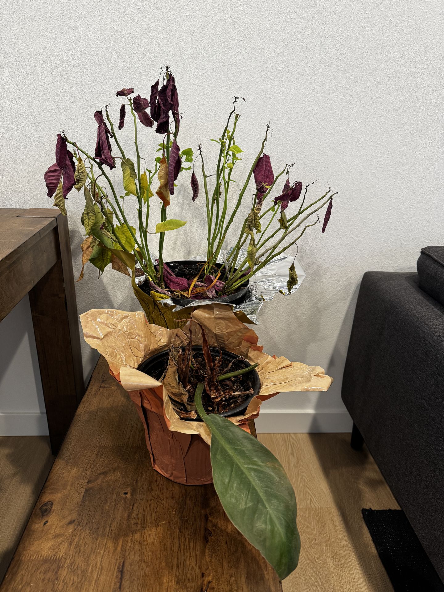 Moving and I would hate to toss these indoor plants: Poinsettia, Philodendron, and Money Plant. Would love for these to go to a new home under better care.