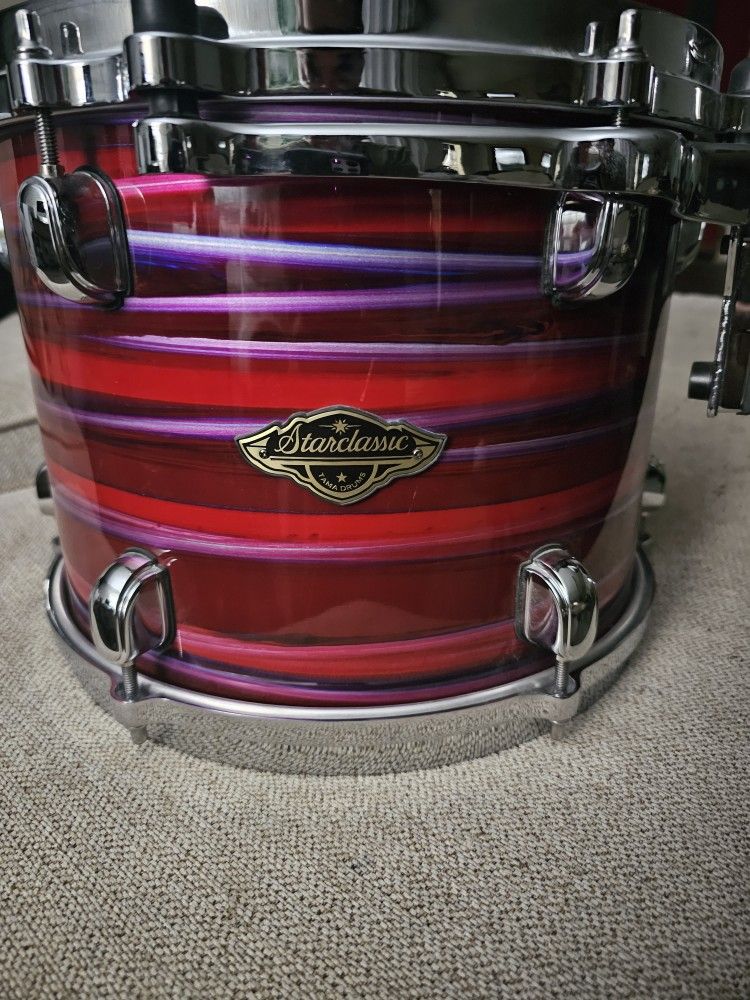 5 piece matching set 8" x 10" rack tom 9" x 12" rack tom 12" x 14" floor tom 14" x 16" floor tom 16" x 22" bass drum No cymbals or hardware besides bass drum tom mounts