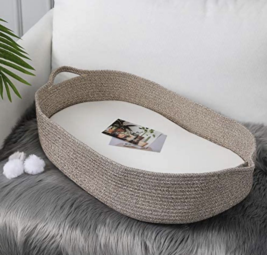 Baby Changing Basket - Moses Basket Changing Table Topper and Thick Foam Pad with Removable Cotton Mattress Cover, 100% Cotton Boho Nursery Decor in Coffee Color Perfect to transport , baby sleep , security original price 99.99$ Perfect condition like new, we used it more as a decoration in the nursery !
