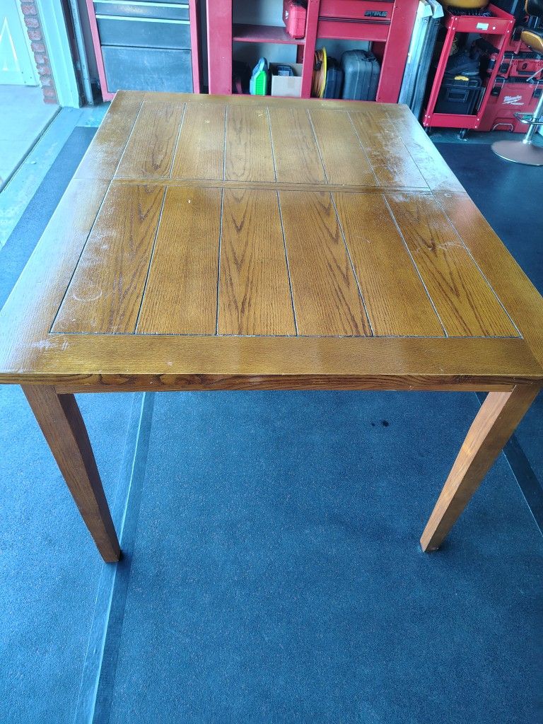 Measures 40 in wide by 54 in long and with the leaf is an additional 12 in. Be great not just for dining room but for homeschooling or craft room. Does need a Little Love Serious buyers please. First come first serve please. Cash or venmo