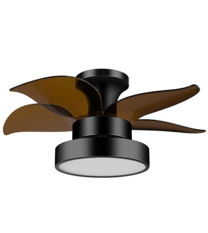 Tomourd Ceiling Fans with Lights, 24 inch Remote Control Ceiling Fan, Flush Mount Low Profile Ceiling Fan Light, Large Airflow 5 Blades 6 Wind Speed Quiet Reversible 3 Color Temperatures Black