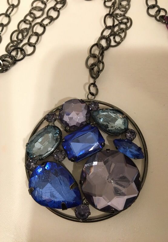 Blue green purple pendant dark chrome chain necklace.