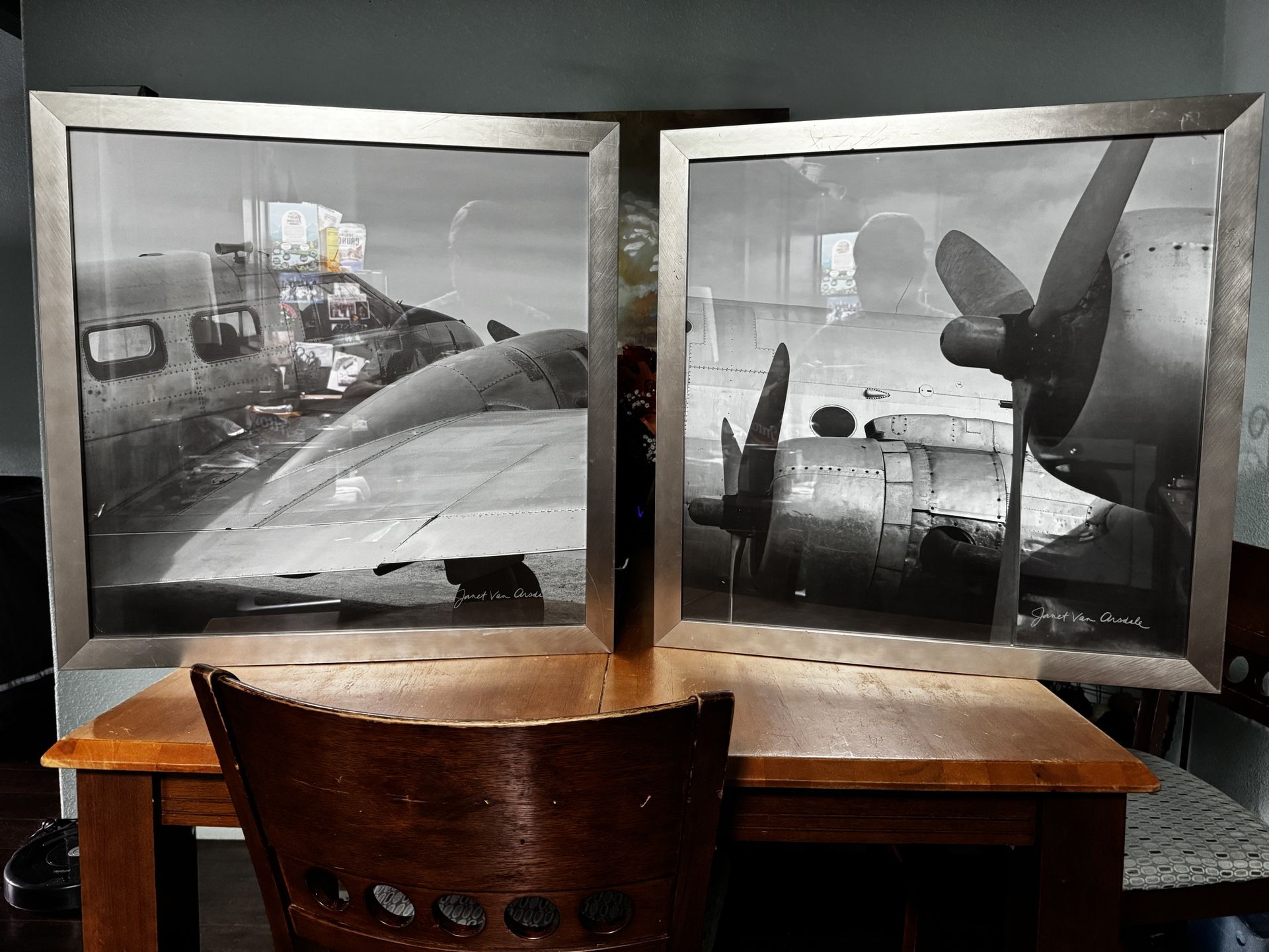 Set of 2 Framed early flight photos by Janet Van Arsdale large 26.5”x26.5” originally $80 each