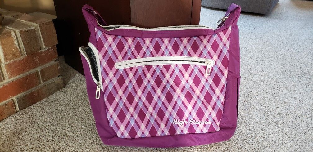 15" laptop bag with multiple pockets and storage slots. Adjustable shoulder strap, fun color! Great for files, paperwork etc... Excellent condition, non-smoking home. Make an offer!
