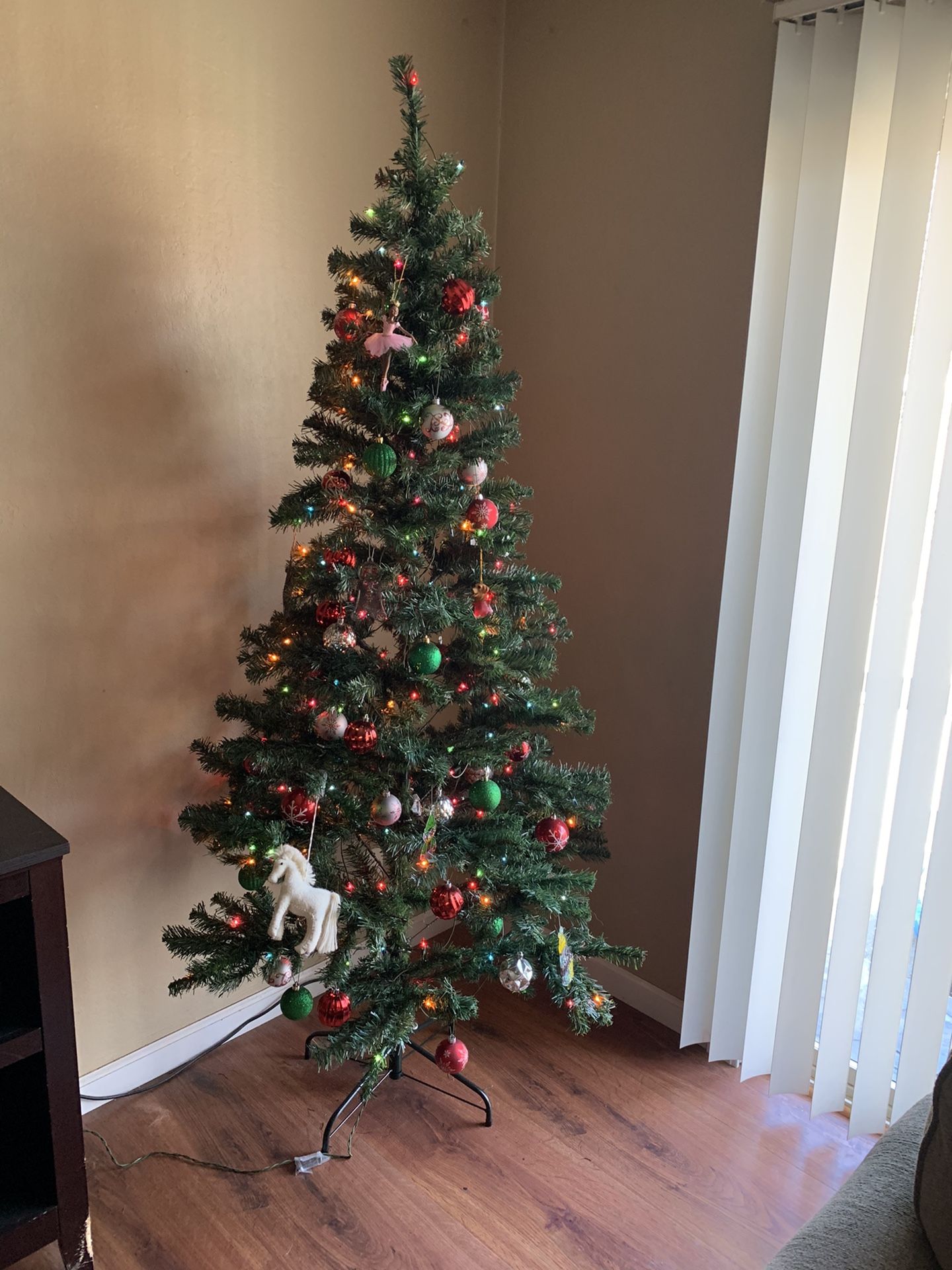 Pre lighted 3 piece Christmas Tree. Easy to put up and take down. Doesn’t come with ornaments in the picture $50 obo