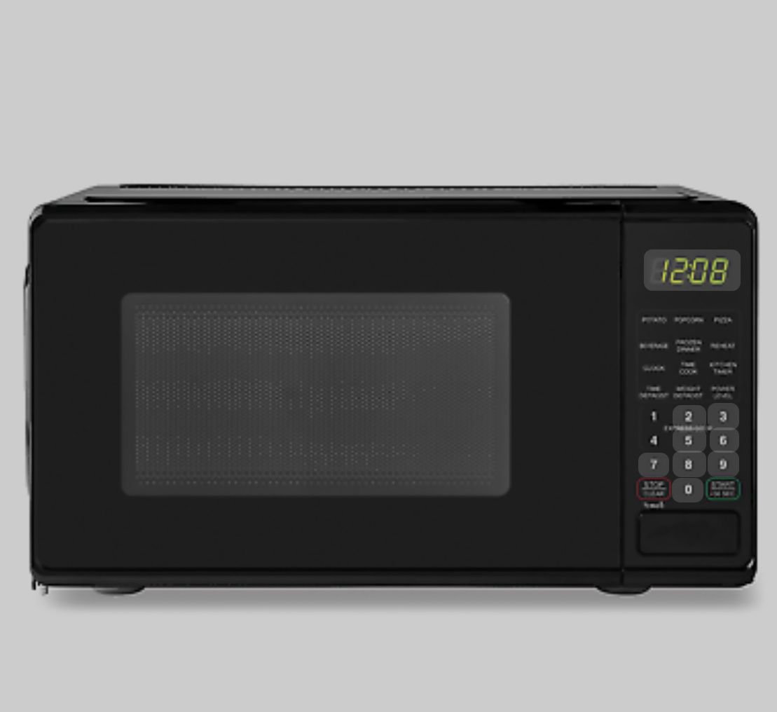 Lightweight microwave that is smaller than average, sleek black with less than a year of use