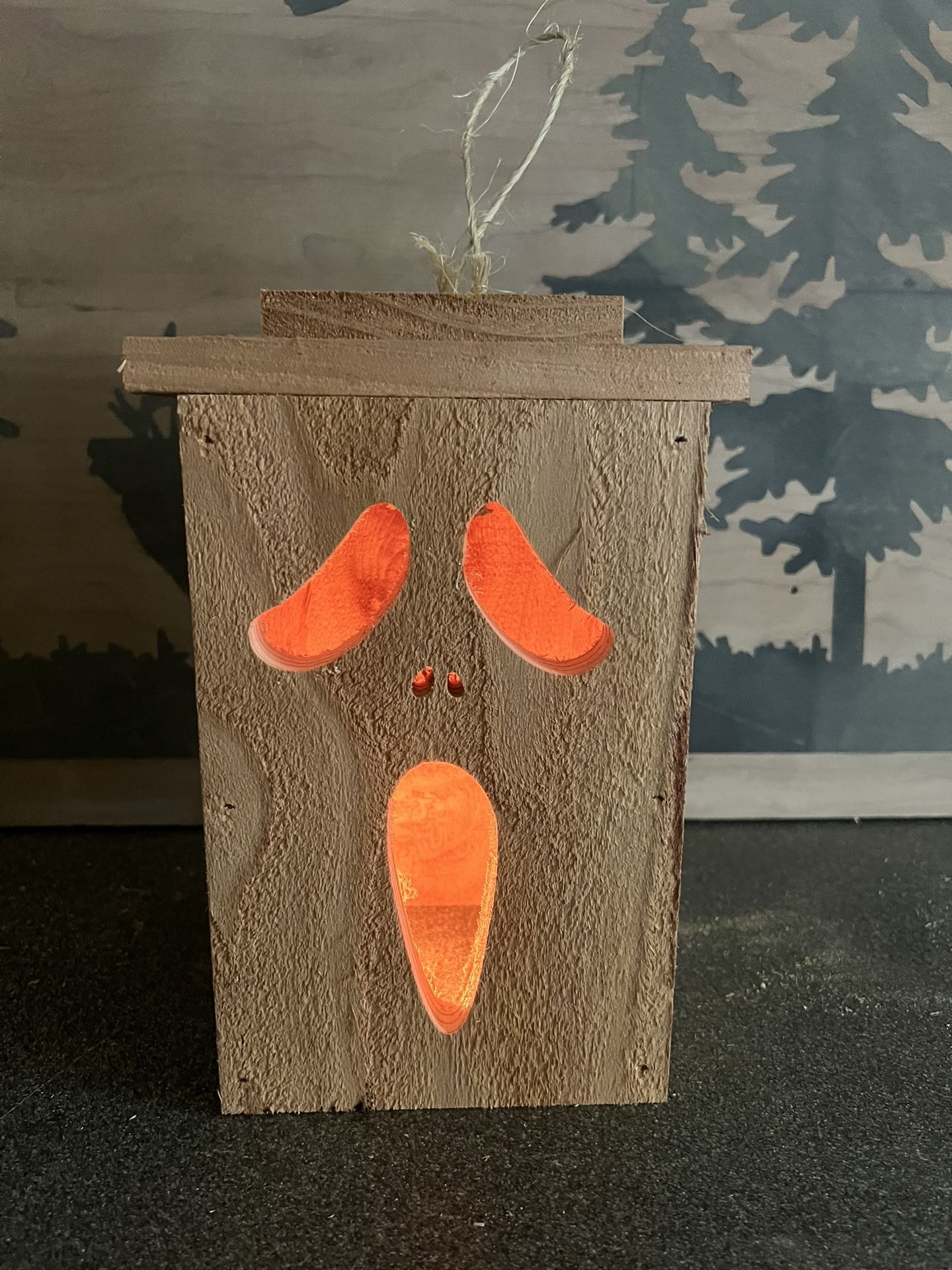 Halloween Scream Face lantern Spooky wooden lantern carved in cedar with a natural wood finish, can be left as is, painted or stained. Great for indoor or outdoor Halloween decor Made by JM Custom Wood Works