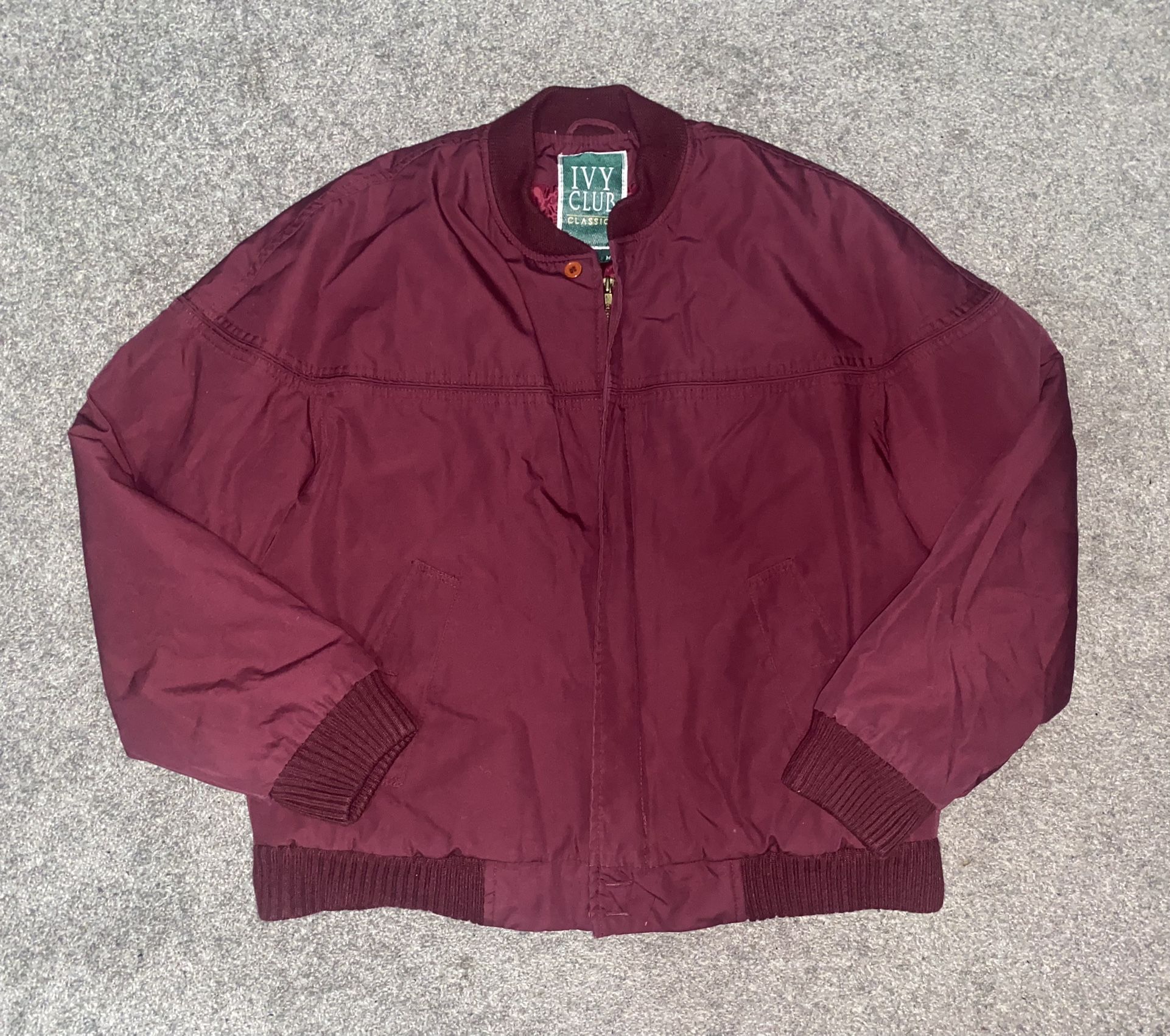 Vintage 80's Ivy Club Classic Jacket Men Medium Bomber Jacket Maroon