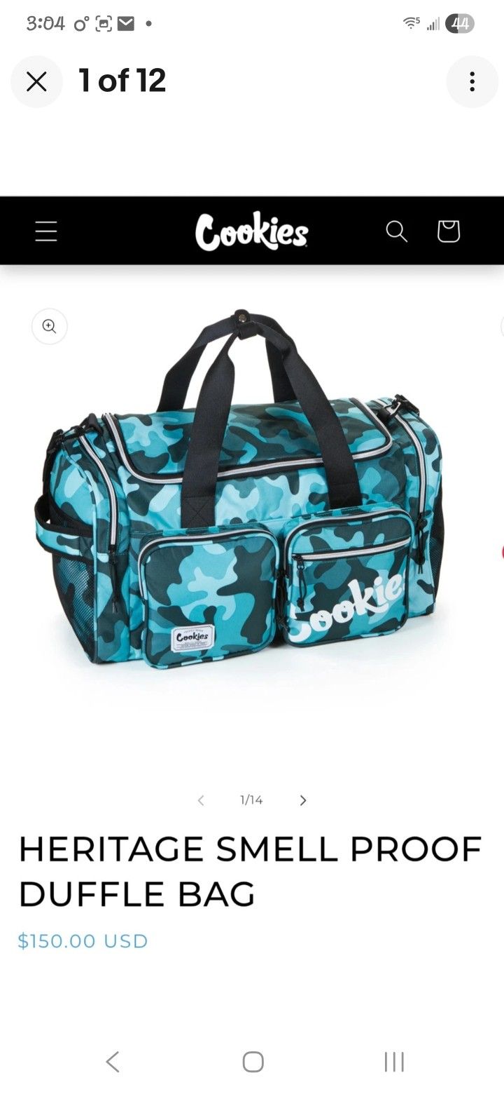 Cookies smell proof duffle bag brand new. Camo turquoise also have 1 black and yellow camo