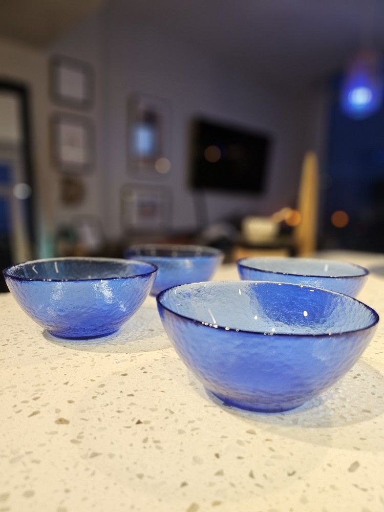 Vintage Ferro Inspired Murano Colbalt Blue Textured Art Glass Salad Set For 4 Italian