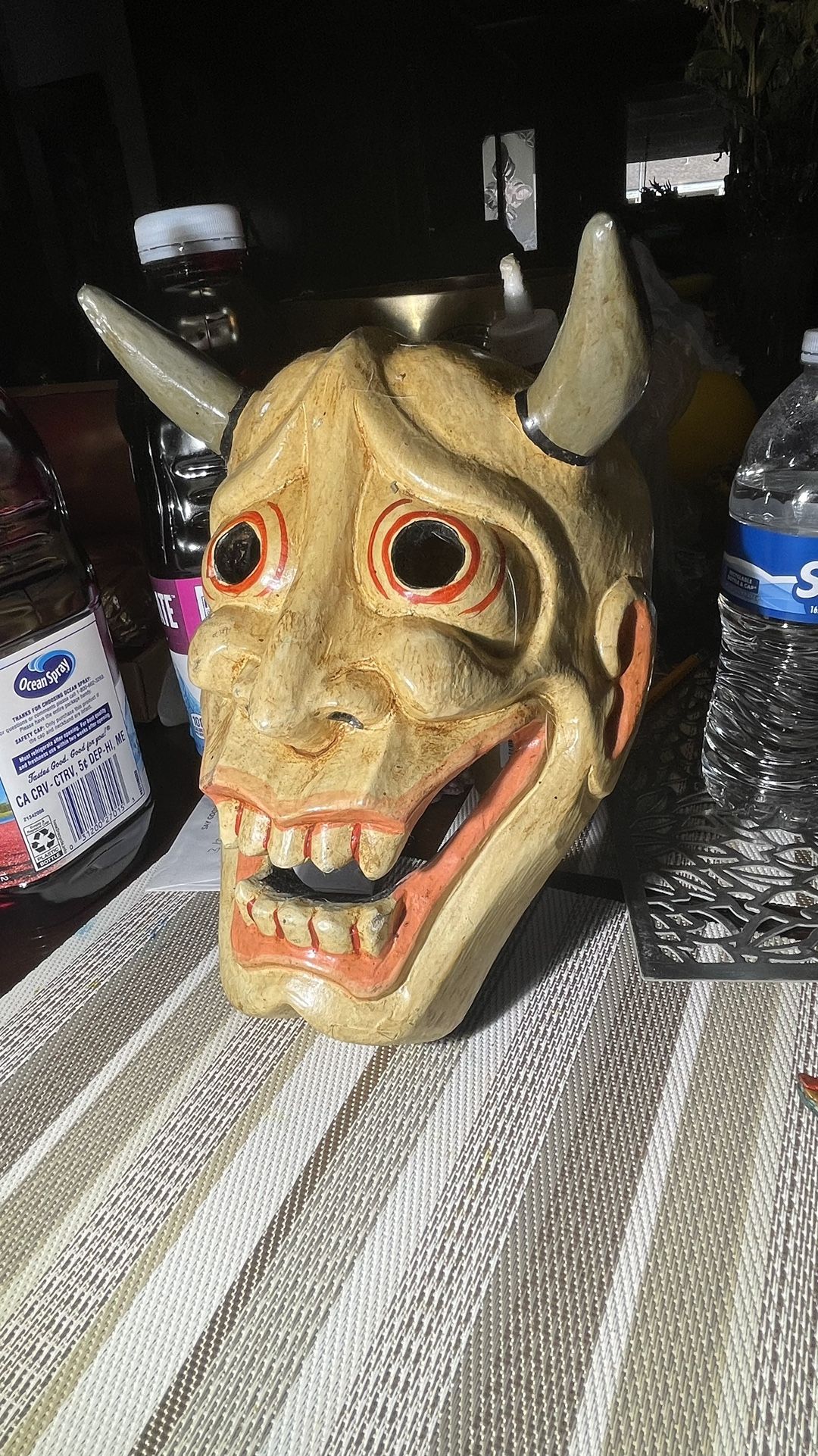 Beautiful handmade wooden horn mask. Nice home decoration items.