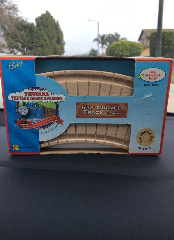 You are looking at a RARE and brand-new Thomas the Tank Engine and Friends 6 1/2 inch curved track. These are the unique clickty-clack track. Includes four pieces. Made from real wood.