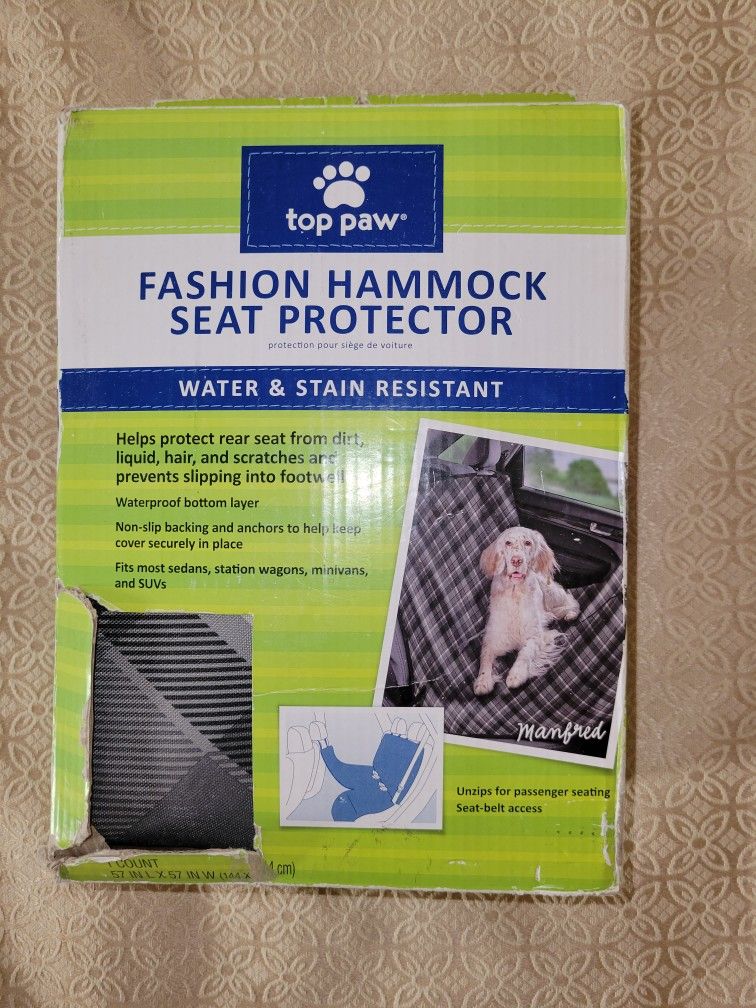 Waterproof backing Stain resistant Non-slip backing Anchor straps go on head rests Sells for $29.99 at Petsmart