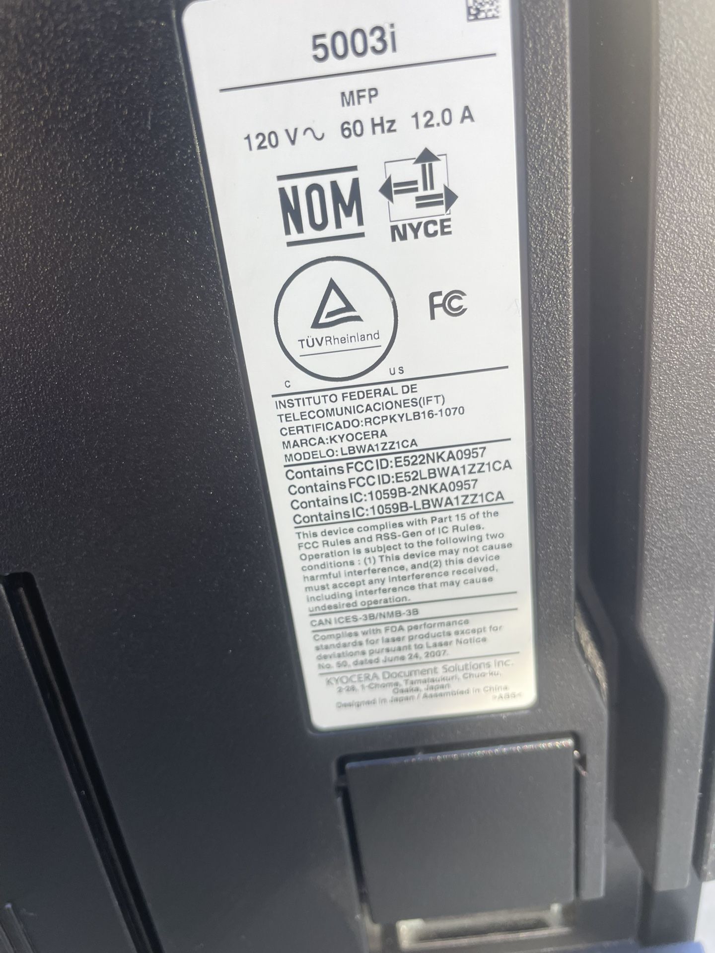 Kyocera TASKalfa 5003i Laser Black and White Multifunctions Printer, Copier, Scaner Copy/Print speed up to 50 ppm Auto Duplex, Mobile Print, Wireless, Network, USB Paper size A3 - 11in x 17in Scan-to-email, Scan-to-Folder, Network TWAIN Scan-to-SMB, Scan-to-BOX, Scan-to-USB. Sale, Rent & Services New, Used & Refurbished Laser Color / Black & White Copiers & Printers. we offer our service throughout Los Angeles and Orange County. We also have a delivery and installation service to print / scan. All our prices are negotiable, starting from $500. We have a large inventory of Copiers Ask for the Copier and the price That it adapts to your budget. All refurbished machines are 100% fully functional, tested by our Tech Team. Contact Us if you have any questions or concerns Please Send a message and leave your phone number via "Contact Seller". We will respond within 24 hours and do our best to assist you.