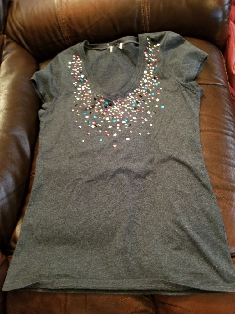 Pullover short sleeved grey color with colorful dots. Fits Med. - Lg.