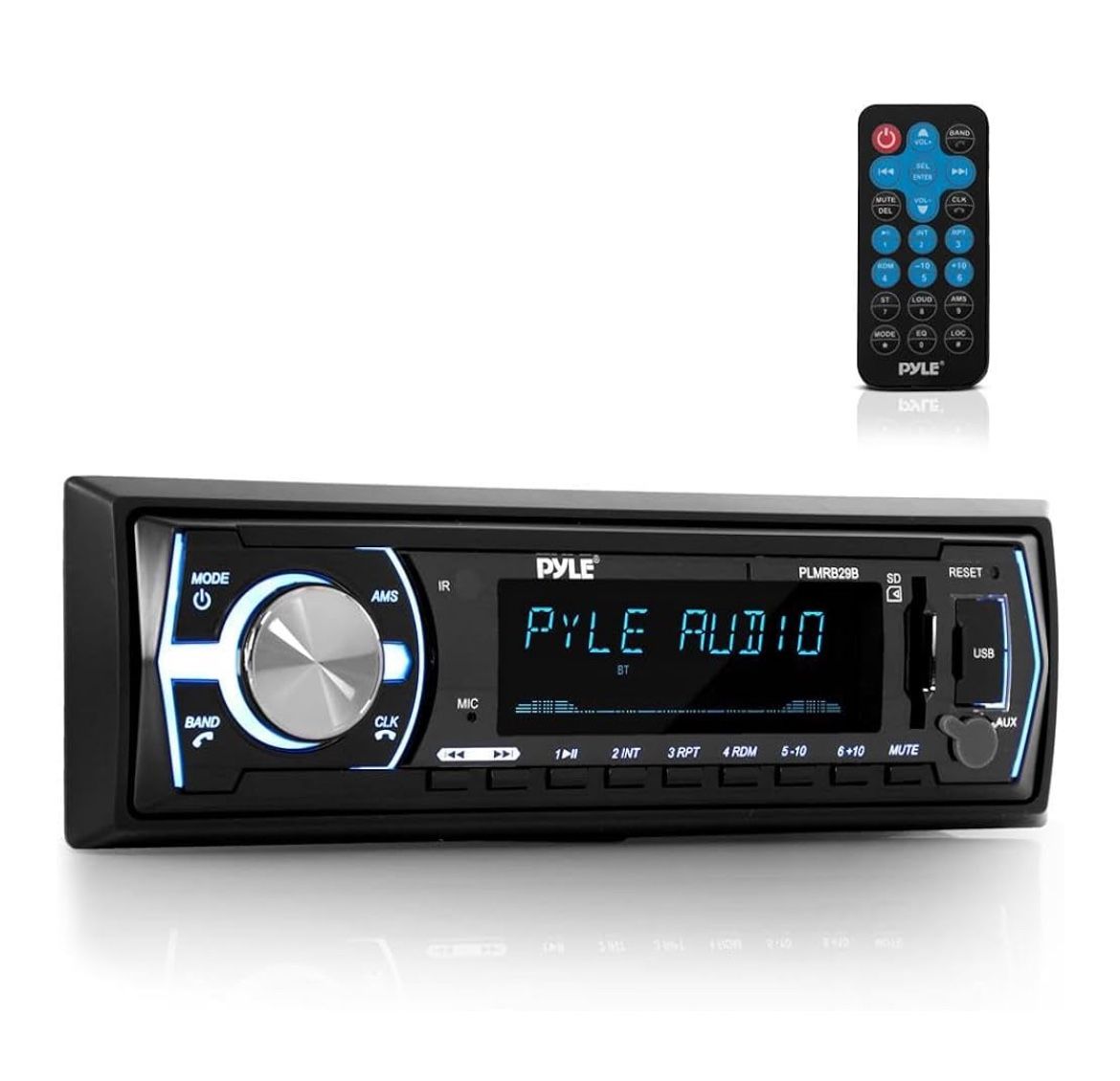 Pyle Marine Bluetooth Stereo Radio - 12v Single DIN Style Boat In dash Radio Receiver System with Built-in Mic, Digital LCD, RCA, MP3, USB, SD, AM FM Radio - Remote Control - PLMRB29B (Black)